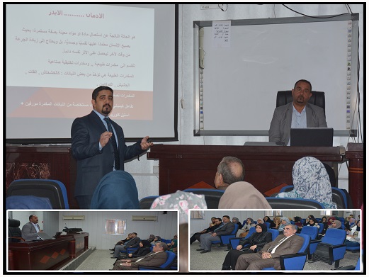برعاية وحضور السيدة عميدة كلية العلوم للبنات الاستاذة الدكتورة (أحلام محمد فرحان)عقدت وحدة التعليم المستمر بالتعاون مع وزارة الشباب والرياضة ندوة علمية عن خطورة المخدرات والمنشطات الرياضية واثارها السلبية على الفرد والمجتمع وذلك في يوم الاثنين الموافق الخامس والعشرين من شهر كانون الاول الجاري ألقيت من قبل (الدكتور حسام نبيل والاستاذ احمد عبد خماط) في قاعة قسم علوم الحاسبات داخل الكلية .