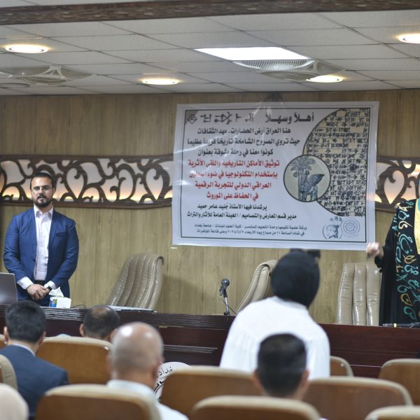 قدّمها مدير قسم المعارض والتصاميم / دائرة المتاحف العامة جُنيد عامر حميد. بحضور عدد من المختصين في مجالات الآثار والتراث والتقنيات الرقمية، إلى جانب معاون العميد للشؤون الادارية أ.م.د. عادل حسين طالب، وعدد من تدريسيي ومنتسبي وطالبات الكلية.