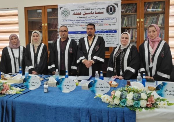ناقشت كلية العلوم للبنات في جامعة بغداد رسالة الماجستير الموسومة “تأثير التغطية بالمخلفات النباتية والسماد الحيوي الطحلبي في مكافحة الادغال وحاصل الحنطة في العراق” للطالبة سما باسل عطاء، والمقدمة لاستيفاء متطلبات نيل شهادة الماجستير في علوم الحياة / علم النبات، بإشراف كل من الدكتورة اروى عبد الكريم توفيق والدكتورة تمارا عدنان علي.