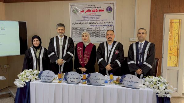 ناقشت كلية العلوم للبنات في جامعة بغداد رسالة الماجستير ) دراسة مستويات نيورون سبسفك اينوليز والكلوتاثايون اس-ترانسفريز في الاشخاص البدناء المصابين وغير المصابين بالسكري من النوع الثاني (